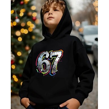 Unisex 3D Grafik Lustiger Slang 67 Kapuzensweatshirt Pullover Langarm 3D-Druck Frühling Herbst Sport Mode Streetwear Kinder 4-12 Jahre Mit Kapuze Lässig Täglich Outdoor Normale Passform