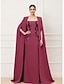 Glitzernde Spitzen-Zweiteiler A-Linien Brautmutterkleid Elegantes Einfaches Luxuriöses Chiffon Bootsausschnitt Midi-Länge Ärmellos mit langer Jacke