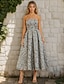 A-Linie Bodenlang Knöchellänge Abendkleid Ballkleid Festliche Kleidung Elegant Vintage Kurzarm Ein-Schulter Formell Hochzeit Tasche Nylon mit Blumenmuster