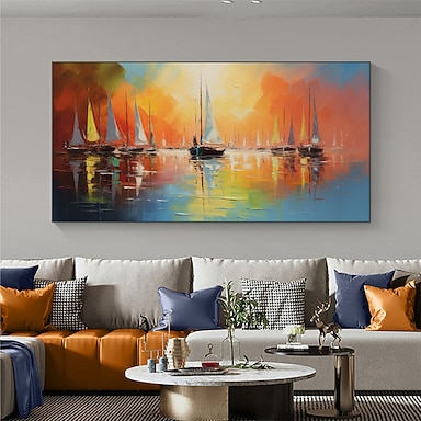 Handgefertigtes Ölgemälde auf Leinwand, Wandkunst-Dekor, originale Segelboot-Landschaft für Heimdekoration, mit gespanntem Rahmen, ohne Innenrahmen-Gemälde