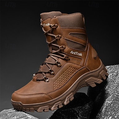 Braune, wasserdichte Kampfstiefel für Herren mit stoßdämpfender Sohle und verstärkter Knöchelstütze, strapazierfähiges taktisches Schuhwerk für Arbeit, Wandern und Camping