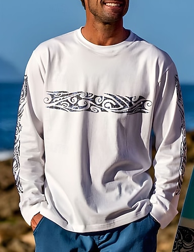 Herren Maorisch T Shirt Langarm T-Shirt 3D-Druck Rundhalsausschnitt Hemd Urlaub Tropisch Täglich Lässig Hawaiianisch Ferien Weiß Sommer Frühling Herbst Bekleidung S M L XL XXL XXXL