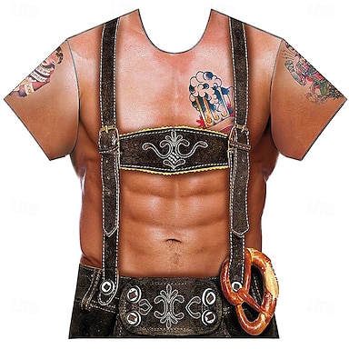 Cosplay Kostüm T-Shirt Druck Bayerisch Deutsch T-Shirt Ärmel Klassisch Streetstyle für Herren Unisex Erwachsene Heißprägen für Karneval Oktoberfestbier Party Alltagstauglich
