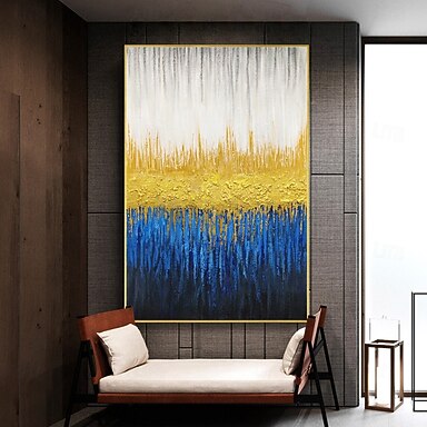 Handgemaltes Ölgemälde auf Leinwand, Wanddekoration, blau-goldene abstrakte Textur, Gemälde für die Dekoration von Esszimmer und Wohnzimmer, auf Keilrahmen gespannt/gerollt, rahmenlos, ungespannt
