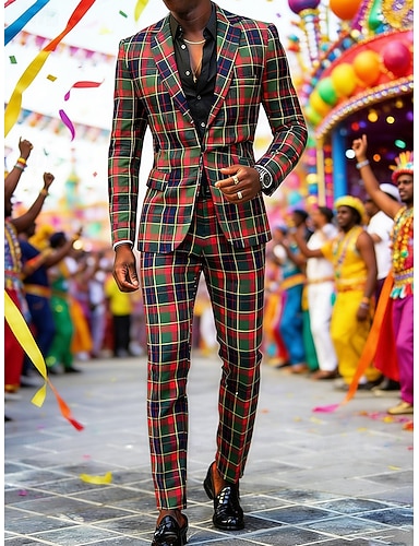 Herren Blazer + Anzughose Blazer Anzüge Geschäft Arbeit Abendgesellschaft Elegant Neutral Herbst Winter Terylen Karomuster 2 teilig Einreihig Blazer Rote