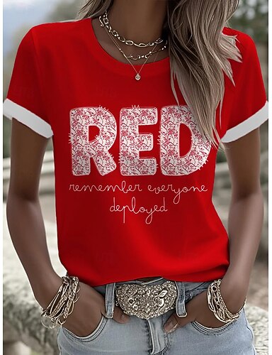 Amerikanischer Unabhängigkeitstag Damen T Shirt Druck Grafik Buchstabe Vintage Stilvoll Klassisch Kurzarm Rundhalsausschnitt Rundhals Normale Oberteile Lässig Täglich Schwarz Weiß Rote Sommer Frühling