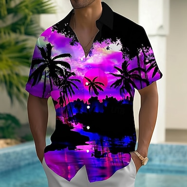Herren Kokospalme Natur & Landschaft Tropische Pflanzen Sommer Hawaiihemd Knopfhemd Alohahemd Kurzarm Hawaiianisch Lässig Urlaub Sommer Frühling Umlegekragen 3D-Druck Hemden mit Kragen Eine Tasche