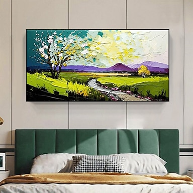 Handgefertigtes Ölgemälde auf Leinwand, Wandkunst, Original-Naturlandschaft, abstrakte Landschaftsmalerei für Wohnkultur mit gespanntem Rahmen/ohne Innenrahmenmalerei