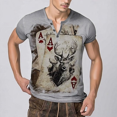 Lederhosen T-Shirt Match Henley-Shirt Bayerisch München Deutsch alpin Erbe T-Shirt Ärmel Grafik für Herren Erwachsene 3D-Druck für Karneval Oktoberfestbier Party