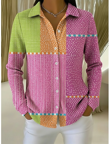 Damen Hemd Knöpfe Druck Grafik Geometrisch Farbblock Elegant Stilvoll Modern Langarm Hemdkragen Normale Oberteile Täglich Arbeit Party-Abendmode Rosa Purpur Orange Grün Frühling Herbst Winter