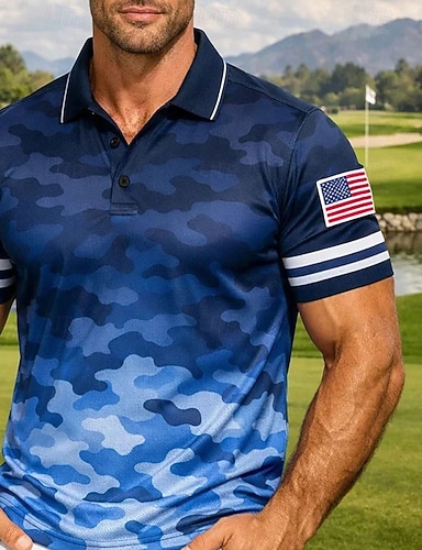4. Juli 2026 250. Herren Amerikanische US-Flagge Poloshirts Kurzarm Polo-Shirts Hemden mit Kragen Lässig Athleisure 3D-Druck Knöpfe Atmungsaktives Gewebe Frühling & Sommer Blau Rote Grau
