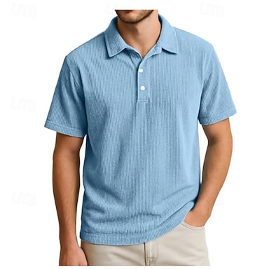 Herren Poloshirts zum Suchbegriff: "Waffel" Golfhemd Arbeit Casual Kargen Kurzarm Basic Modern Glatt Knopf Sommer Frühling Regular Fit Schwarz Weiß Gelb Rote Hellgrau Hellblau Poloshirts zum