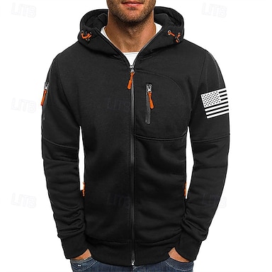 Herren Kapuzensweatshirt Vollreißverschluss-Kapuzensweatshirt Schwarz Weiß Wein Armeegrün Marineblau Mit Kapuze Nationalflagge Reißverschluss Tasche Sport & Outdoor Täglich Ferien Polyester