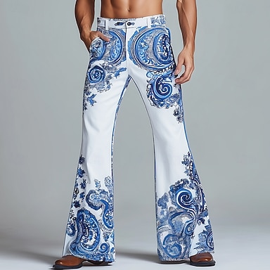 Herren Paisley-Muster Blumendruck Ethnisch Hose Disco-Hosen 60er 70er Schlaghosen Mittlere Taille Vintage-Retro Outdoor Party Lässig Seitentaschen Schlaghose Frühling Herbst 3D-Druck Blau Schwarz und