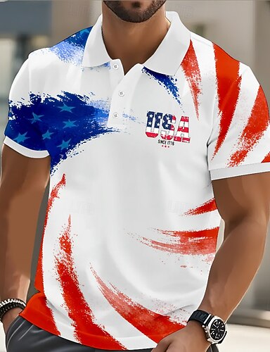 4. Juli 2026 250. Herren Amerikanische US-Flagge Polo Kurzarm Polo-Shirts Revers Lässig Athleisure Alltagskleidung Festival-Outfit 3D-Druck Knöpfe Sommer Blau Weiß Gelb