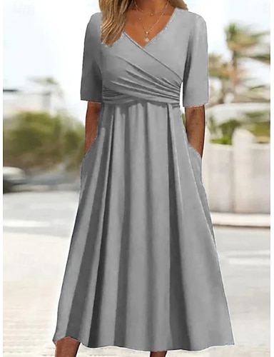 Damen Knielanges Kleid Freizeitkleid Elegant Mode Modern Outdoor Urlaub Ausgehen Normale Passform Einfach Kurzarm V Ausschnitt Rote Purpur Khaki Dunkelblau Sommer Frühling