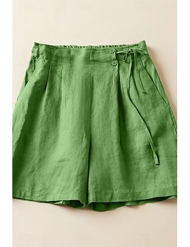 Damen Baumwoll Mischung Kunstbaumwollleinen Shorts Stoffhosen Streetwear Lässig Kurz Natürliche Taille Einfach Tasche Elastischer Bund Außenbereich Bequem Straße Ausgehen Magenta Schwarz Weiß Grün