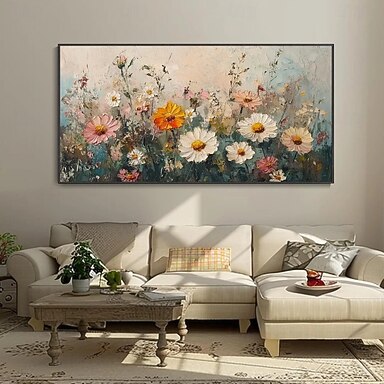 Handgefertigtes, handgemaltes Ölgemälde, große Größe, Blumenblüte, Wiesenlandschaft, Heimdekoration, Dekoration, gerollte Leinwand, kein Rahmen, ungedehnt