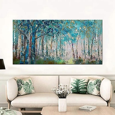 Handgefertigtes Ölgemälde auf Leinwand, Wandkunst, Dekoration, moderne üppige Dschungellandschaft, für Wohnkultur, gerolltes, rahmenloses, ungedehntes Gemälde