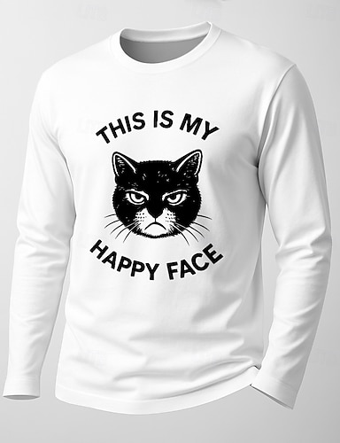 Herren Langarm Grafik T-Shirt - Grumpy Cat 'Das ist mein glückliches Gesicht' Lustiges sarkastisches Shirt
