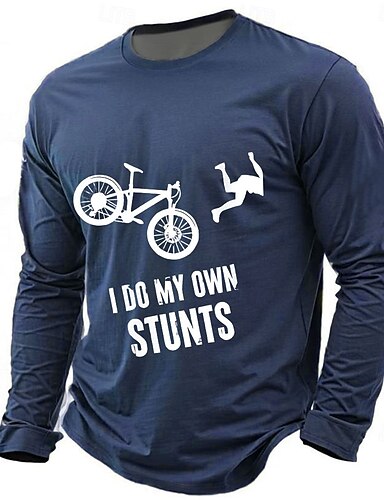 Herren Langarm Grafik T-Shirt Lustiges 'Ich mache meine eigenen Stunts' Radfahren Fahrradfahrer Humor Tee