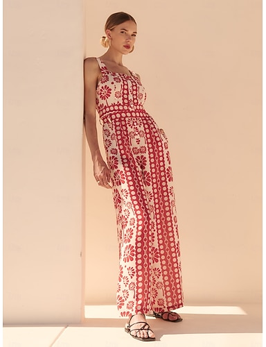 Satin-Jumpsuit mit geometrischem Blumenmuster, ideal für den Urlaub