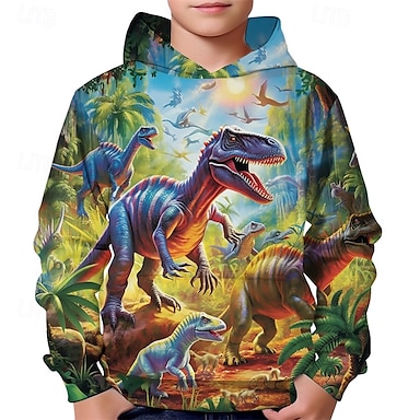 Unisex 3D Grafik Dinosaurier Kapuzensweatshirt Pullover Langarm 3D-Druck Frühling Herbst Sport Mode Streetwear Kinder 4-12 Jahre Mit Kapuze Lässig Täglich Outdoor Normale Passform