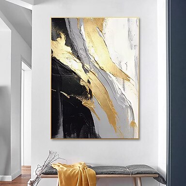 Handgemaltes Ölgemälde auf Leinwand, abstrakte goldene Textur, Wanddekoration für Wohnzimmer, Eingangsbereich, gerollt, rahmenlos, ungespannt