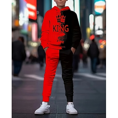 Jungen 3D Grafik Buchstabe Hoodie- und Jogginghosen-Set Sportanzug Trainingsanzüge Langarm Frühling Herbst Täglich Basic Lässig Kinder 4-12 Jahre Mit Kapuze Outdoor Urlaub Sport Figurbetonter Schnitt