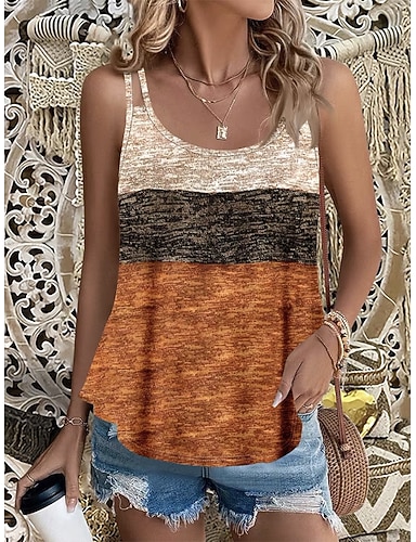 Damen Tank Top Sommeroberteile Elegante Oberteile Druck Ombre Grafik Farbblock Vintage Stilvoll Klassisch Ärmellos Rundhalsausschnitt Spaghettiträger Lange Oberteile Täglich Blau Purpur Orange Grün