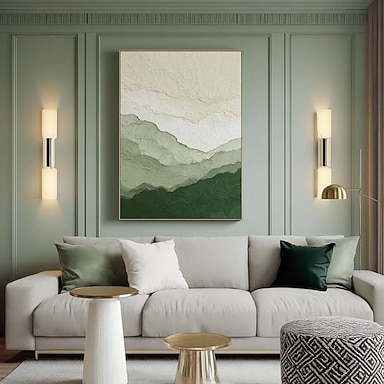 Weihnachtsgeschenk: Handgefertigte abstrakte Gemälde in Grün und Beige, Berglandschaften, grüne Landschaften, Wandkunst, großes minimalistisches Panorama, Tal-Ölgemälde