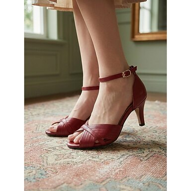 Vintage-Pumps im Stil der 1950er Jahre in Weinrot mit offener Spitze – Retro-Riemchen-Pumps mit verstellbarem Knöchelriemen für Cocktailpartys, formelle Anlässe und Business-Kleidung