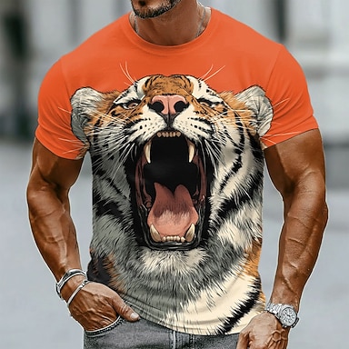 Herren Tiermotiv Tiger Lustig T Shirt Langarm T-Shirt 3D-Druck Rundhalsausschnitt Hemd Mode Basic Lässig Täglich Straße Blau Blau 2# Khaki Sommer Frühling Bekleidung S M L XL XXL XXXL