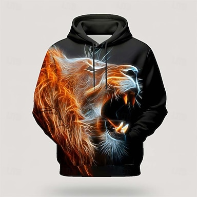 Herren Löwe Kapuzenshirts Pullover Mode Cool Täglich Langarm Rundhalsausschnitt Party Ferien Streetwear Schwarz Kordelzug Herbst Winter Designer S M L XL XXL XXXL