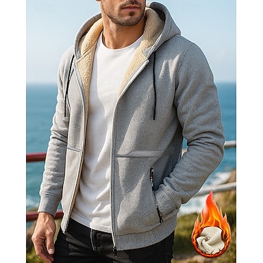 Herren Einfarbig Zip Up Sweatshirt Fleecejacke Herbst Winter Tasche Langarm Athleisure Winddicht Warm Outdoor Reise Sport Weinrot Schwarz Weiß Sportbekleidung Sportkleidung