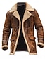 Herren Imitat-Lederjacke Shearling-Mantel Fleecejacke Windbreaker Alltagstauglich Windjacke Tasche Fleecekragen Winter Einfarbig Vintage Mode Revers Regulär Braun Jacken
