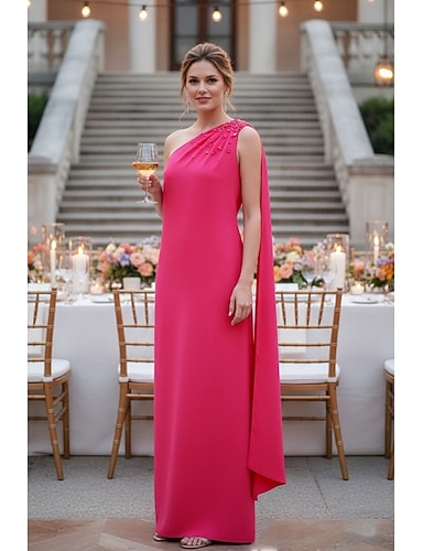 Schlauchkleid Bodenlang Abendkleid Cape-Kleid Abendkleid Elegant Promi-Stil Ärmellos Ein-Schulter Gartenparty Hochzeit Stretch-Crêpe mit Perlenbesetzt Falten