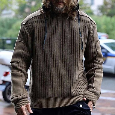Herren Pullover Gerippt Stricken Normale Oberteile Patchwork Farbblock Einfach Rundhalsausschnitt Strickware Zeitgenössisch Lässig Alltagskleidung Bekleidung Herbst Winter Kaffee S M L