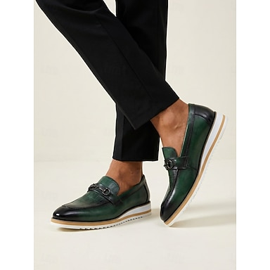 Grüne Herren-Freizeitschuhe aus Leder, elegantes Slip-on-Design, bequeme, gepolsterte Sohle, stilvoller Casual-Look für Hochzeiten, Partys und den Alltag