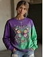 Damen-Sweatshirt mit Wikinger-Motiv, Vintage-Stil, langärmlig, Rundhalsausschnitt, normale Passform, Streetwear, Alltagskleidung, lila, Frühling, Herbst, Winter