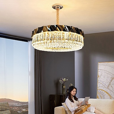 Kronleuchter 60/80 cm, LED-Kristall-Deckenleuchte, Kreis-Design, einzigartiges Design, Unterputzleuchten, Edelstahl-LED im nordischen Stil, 110–240 V
