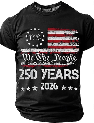 4. Juli 2026 250. Gedenktag Herren 3D Druck US Flagge Rundhals Kurzarm T-Shirt Alltag Straße