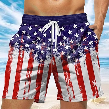 Tag der Unabhängigkeit Herren Amerikanische US-Flagge 250. Jahrestag des Unabhängigkeitstages der USA am 4. Juli Patriotisch Badehosen Badeshorts Boardshorts Mittlere Taille Hawaiianisch Ferien
