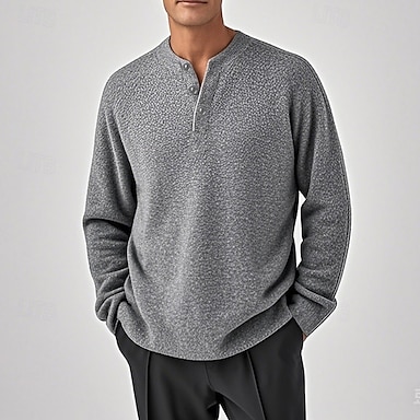Herren Pullover Strickpullover Pullover Polopullover Gerippt Stricken Standard Strick Glatt Henley Modisch Basic Urlaub Freizeitskleidung Bekleidung Herbst Winter Schwarz Hellgrau M L XL