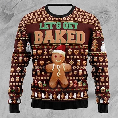 Hässlicher Weihnachtspullover Herren 3D-Druck Lebkuchenmänner Pullover Strickware Rundhalsausschnitt Lässig Urlaub Täglich Festival 3D-Druck warm halten Langarm Frühling Herbst Winter Rote Marineblau