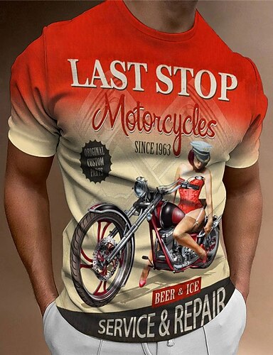 Herren Grafik Motorrad T Shirt Motorrad-T-Shirt Kurzarm T-Shirt 3D-Druck Rundhalsausschnitt Hemd Vintage Mode Designer Outdoor Täglich Sport Gelb Rote Blau Frühling & Sommer Bekleidung S M L XL 2XL
