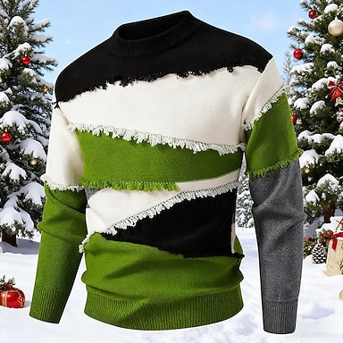 Herren Pullover Strickpullover Gerippt Stricken Normale Oberteile Gestrickt Patchwork Rundhalsausschnitt Mode Basic Urlaub Alltagskleidung Bekleidung Winter Rote Grün S M L