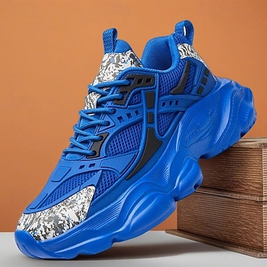 Sportliche Herren-Sneaker mit klobiger Sohle – blau, mit Metallic-Akzenten, atmungsaktives Mesh für einen aktiven Lebensstil und Outdoor-Aktivitäten