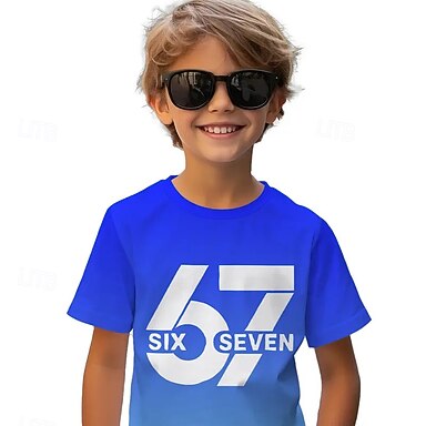 Unisex Jungen 3D Grafik Farbverläufe Lustiger Slang 67 T-Shirt Kurzarm 3D-Druck Sommer Frühling Sport Mode Streetwear Kinder 4-12 Jahre Rundhalsausschnitt Outdoor Lässig Täglich Normale Passform