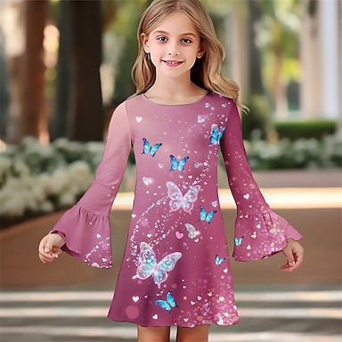 Mädchen' 3D Cartoon Schmetterling Kleid Langarm Sommer Frühling Urlaub Täglich Ferien Prinzessin Schön Süß Kinder 4-12 Jahre Freizeitkleid A Linie Kleid Knielang Normale Passform